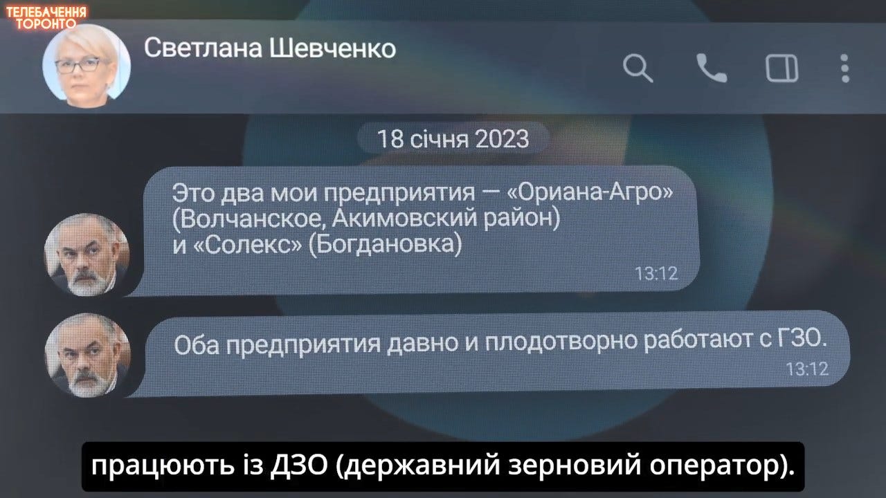 У листуваннях Табачник зазначив, що його компанії активно співпрацюють з російським «державним зерновим оператором». Компанії, які він назвав «своїми» — це «Оріяна-агро» та «Агрофірма «Солекс».